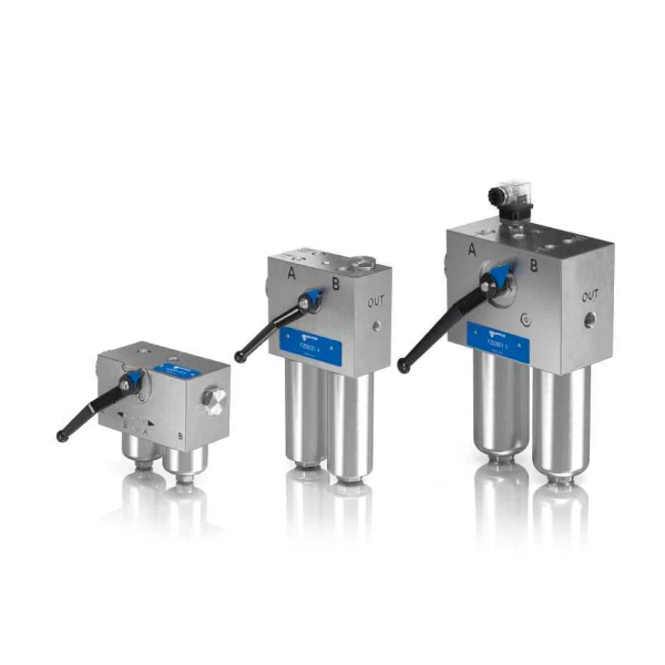 High-pressure stainless steel duplex filters belong to the advanced range designed for fluid contamination control in hydraulic circuits. The MP Filter Series FZD is specifically engineered to allow maintenance and replacement of the filter element without interrupting the operation of the entire system. This is made possible by an integrated changeover function and direct connection to system lines via dedicated hydraulic fittings. Additionally, for the FZD051 model, an optional balancing valve is available, designed to equalize the filter housing pressure before switching.