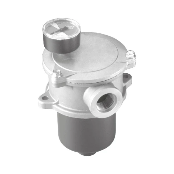 I filtri sono dotati di una valvola di bypass integrata nell’elemento filtrante con pressione di apertura standard di 1,7 bar (25 PSI). Per il monitoraggio, è presente una predisposizione per indicatori di intasamento (G 1/8 o 1/8 NPT a seconda del modello).