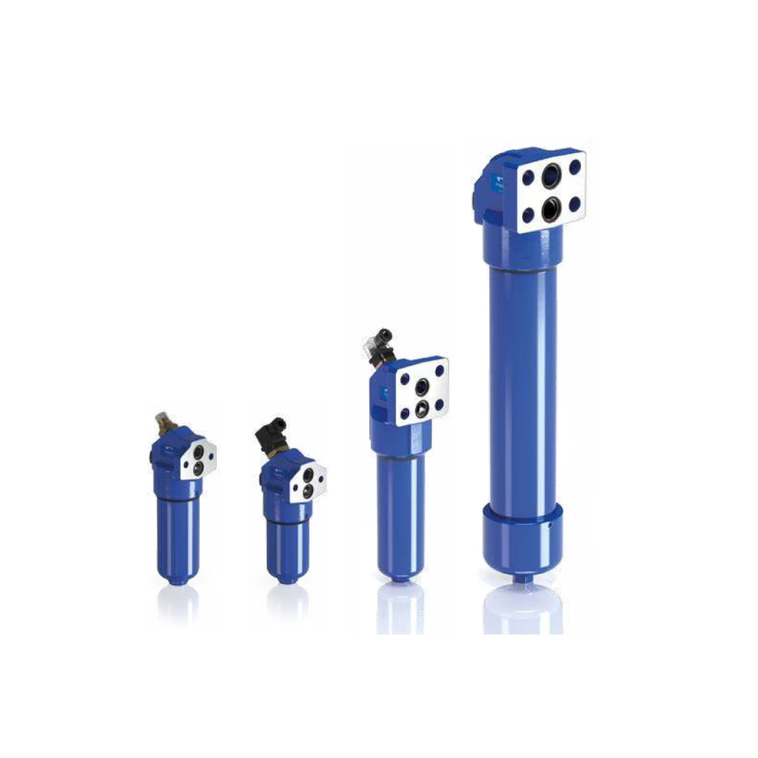 La famiglia si declina in quattro grandezze principali: FHB 050, FHB 065, FHB 135 e FHB 320 , ognuna disponibile in diverse lunghezze (da 1 a 5, in base al modello). Il sistema di tenuta prevede l’uso di guarnizioni standard in NBR (serie A) o, su richiesta, in FPM (serie V). Per il monitoraggio dello stato di efficienza, è possibile installare indicatori di intasamento differenziale di tipo visivo (es. DVA, DVM), elettrico (es. DEA, DEM, DEU) o elettronico (DTA).