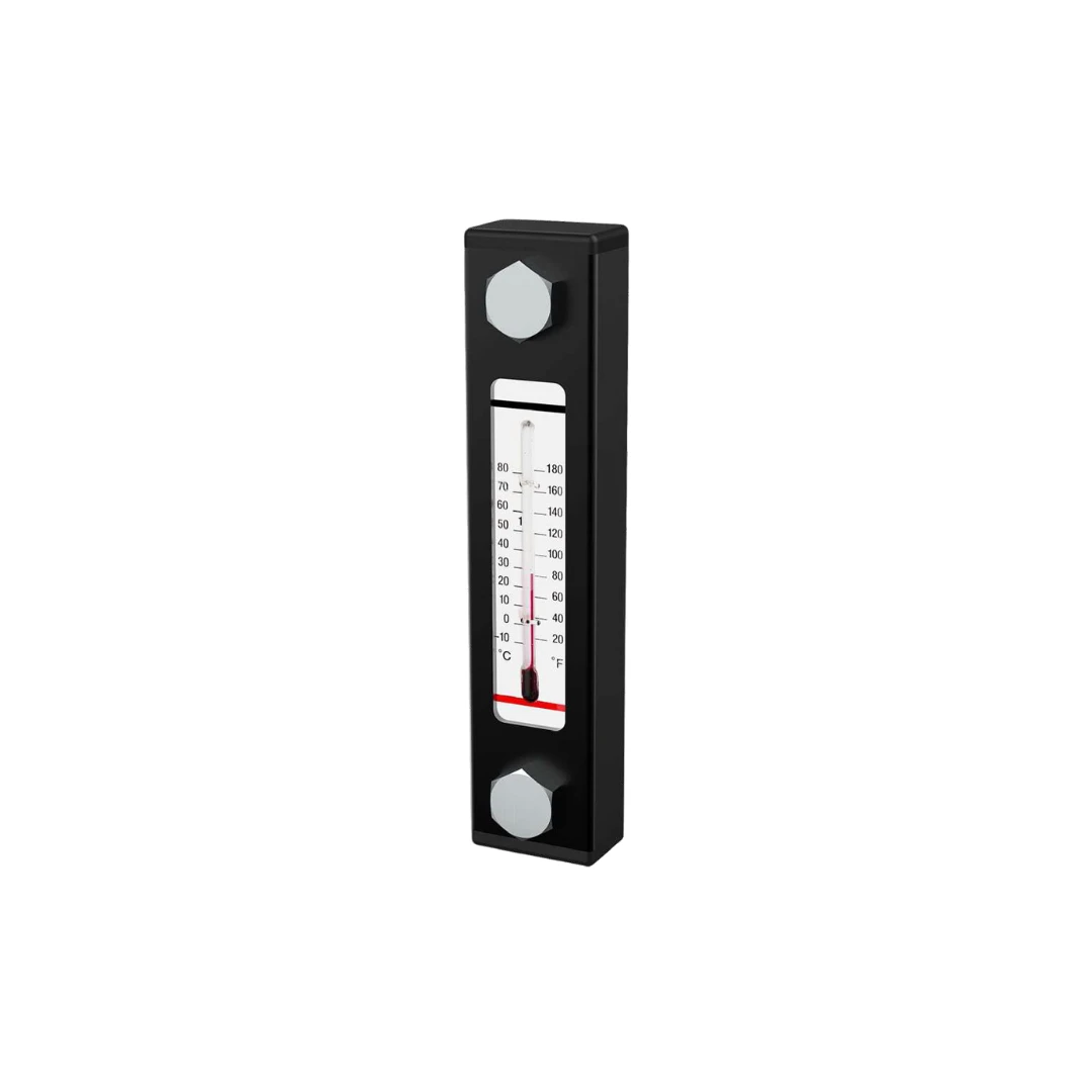 Per un monitoraggio completo, gli indicatori CLA possono essere forniti con l’opzione “T”, che integra un termometro a doppia scala (Celsius e Fahrenheit). Questa funzionalità permette di controllare simultaneamente il livello e la temperatura del fluido direttamente sul serbatoio.